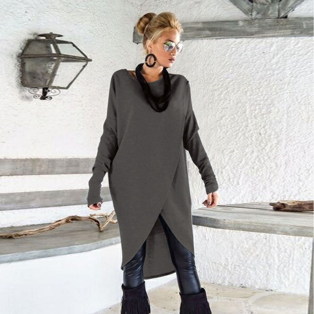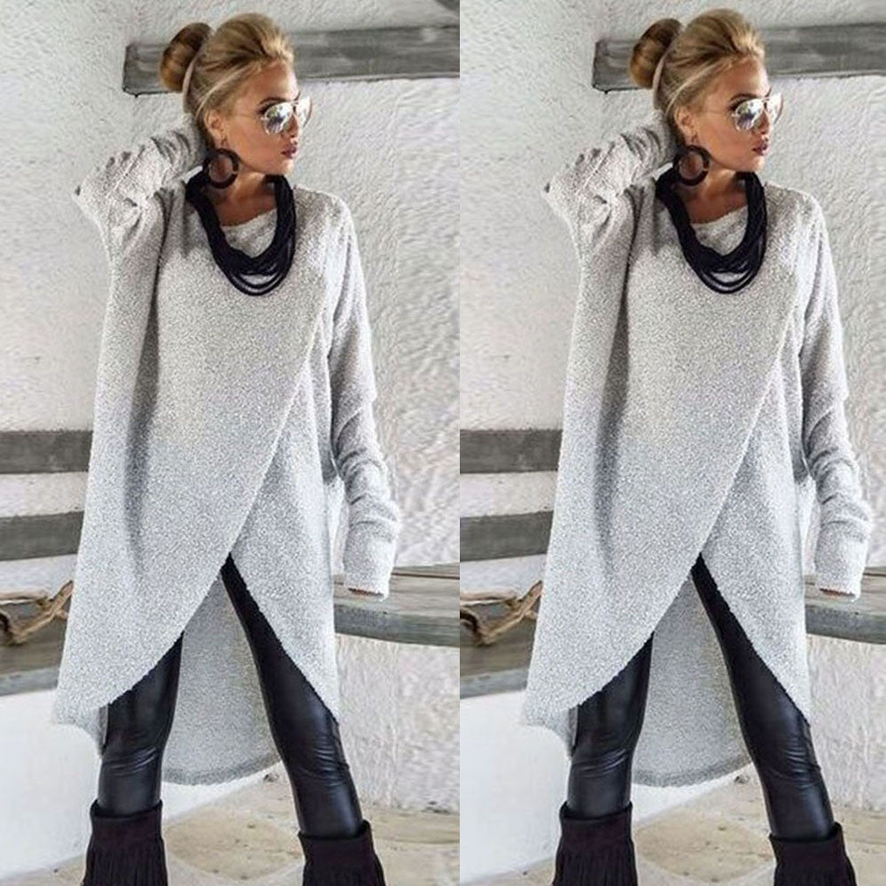 Fashion Womens Irregular Knitting Loose Sweatshirt Pullover Long Tops